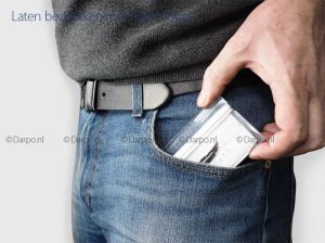 Je stopt het eenvoudig in je broekzak, jaszak of tas.
