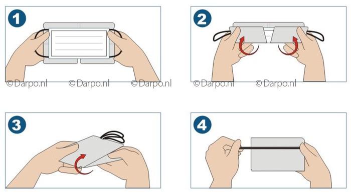 Dan komt het moment dat je een mondkapje gaat dragen en na 3 of 4 uur moet je het dan gaan verwisselen. Hoe handig is het dan als je een compakt etui bij je hebt met een reserve mondkapje. In ons etui kun je op een makkelijke manier een mondkapje opbergen zonder dat het vies wordt of beschadigd raakt. Opgevouwen is het etui niet groter als een smartphone. Gevouwen is het etui 10,5 x 6,5 cm. Je gebruikt de elastieke oorbanden van het masker voor het sluiten van het etui. (slim)